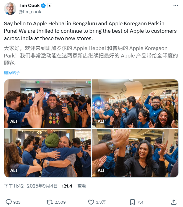 另外昆明配资炒股,苹果位于印度的第4家AppleStore门店AppleKoregaonPark已于昨日开业,库克还亲临现场与诸多苹果员工、用户进行友好交流。